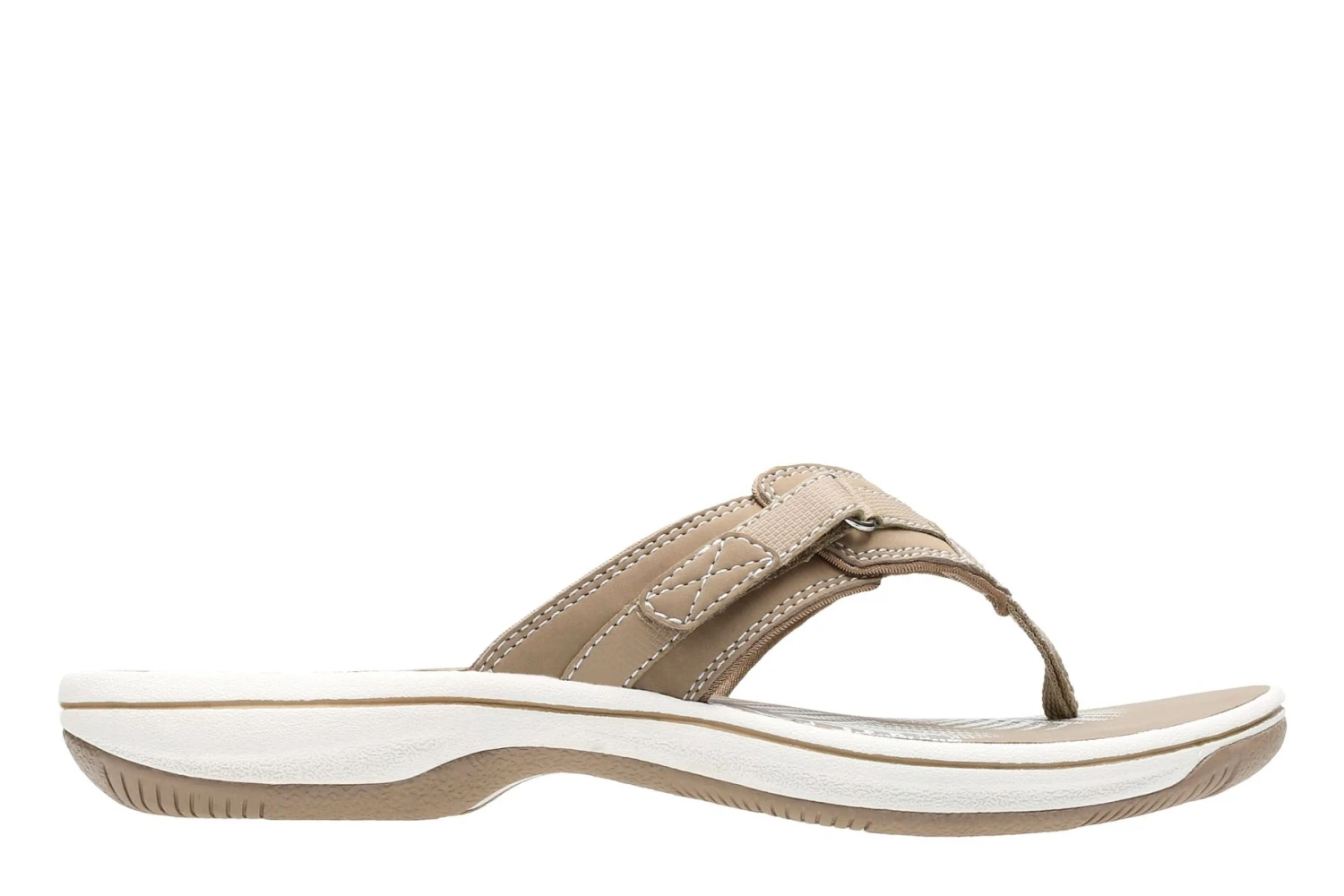 The Breeze Sea is the perfect, fun sandal for the summer lounging by the pool or running around for errands! This thong sandal features a synthetic upper with an adjustable hook-and-loop strap with Velcro closure. A soft textile lining, cushioned EVA footbed and EVA midsole provide a breathable, lightweight, and comfortably supportive wear. A durable TPR outsole delivers stable shock-absorbing traction.