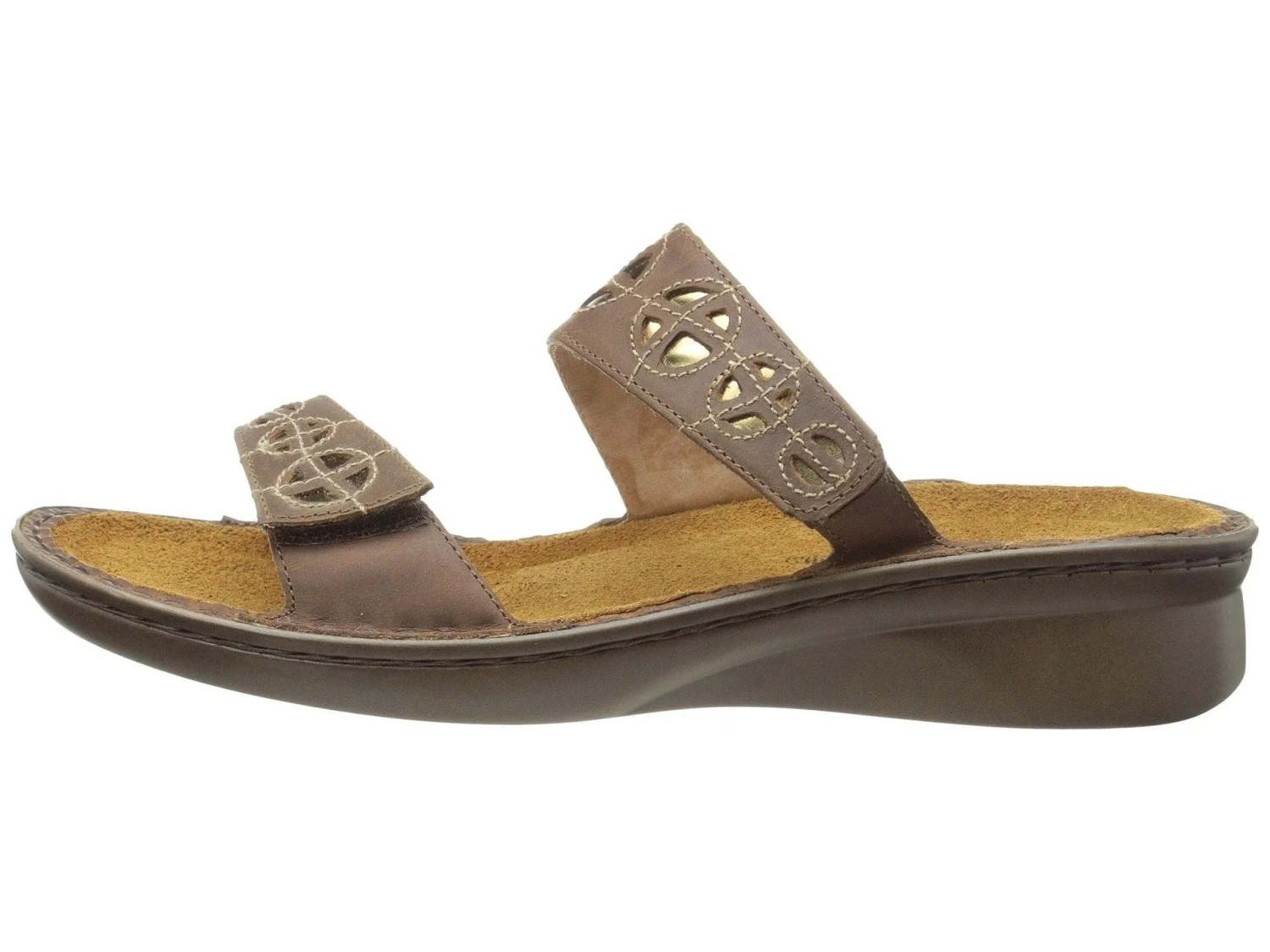 The Cornet from Naot’s Allegro Collection is a fully adjustable slide sandal with two adjustable hook and loop straps with Velcro closure that will be perfect to slip on and wear while running errands or while you’re at home. This chic slide sandal features a beautiful stitch design on a leather upper and a removable, anatomic cork and latex footbed wrapped in pampering suede that molds to the shape of the foot with wear. The sandal also features a polyurethane sole which is extremely lightweight and durable.