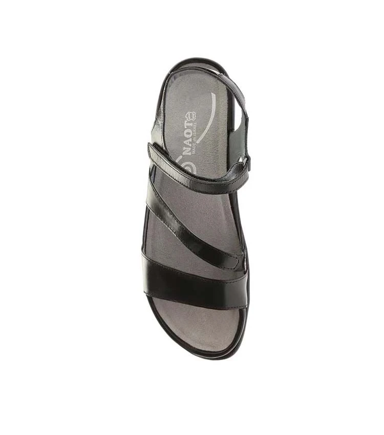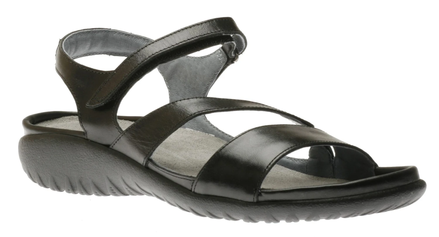 Built for walking comfort, the Etera from Naot’s Koru Collection is an extremely comfortable sandal you’ll want to wear all summer long. This style features a leather upper, a hook and loop strap with a Velcro closure at the instep, elastic gore at the middle strap and a padded backstrap. Naot’s removable, anatomic cork and latex footbed is wrapped in pampering suede and molds to the shape of the foot with wear. The sandal also features a polyurethane sole which is extremely lightweight, durable and slip resistant. This sandal uses a hand-sewn Strobel construction to make it strong and extremely flexible.