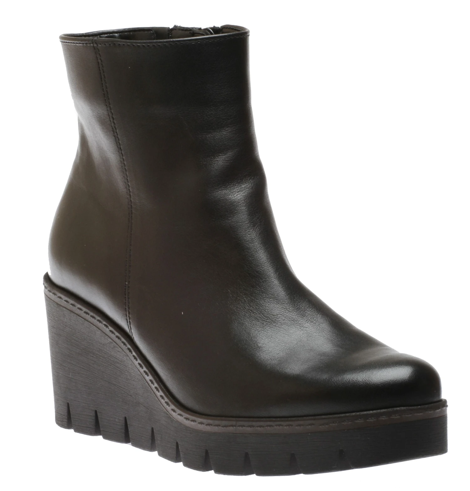 The Gabor 54.780.27 wedge ankle boot is a showstopping statement that features a beautifully crafted upper in black leather with a side zipper fastening and a rubber grip sole, creating a look that feels modern and chic and offers the utmost in walkable comfort.
