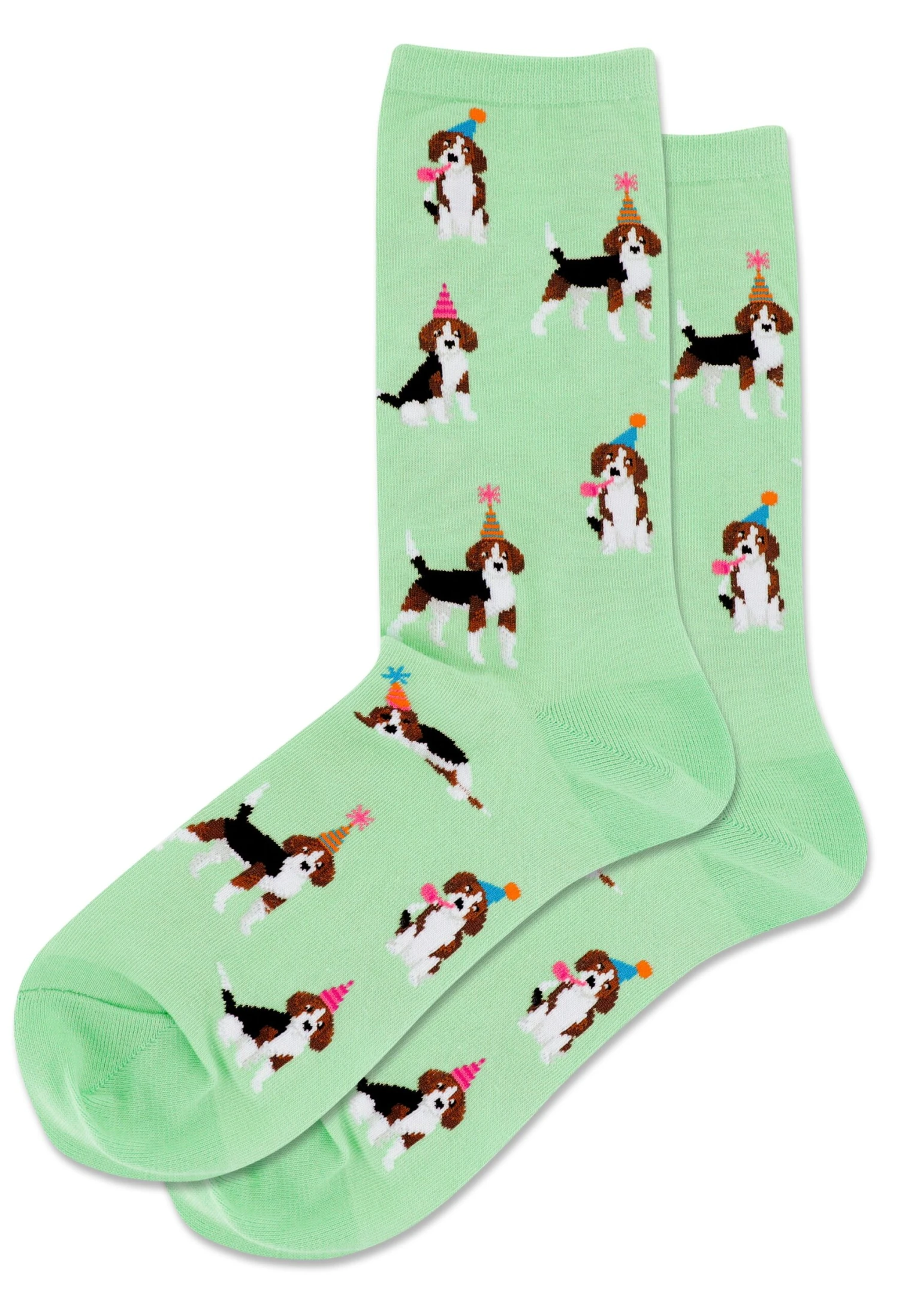 An adorable beagle dog design merges with classic construction on these women’s party beagle socks. One-of-a-kind patterning meets must-have comfort for the perfect finish.