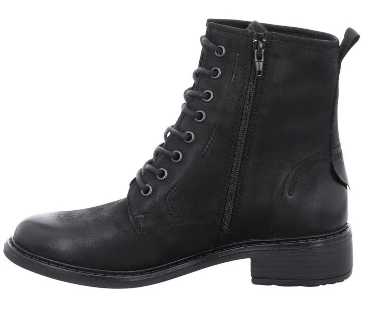 The Selena 06 boot will pair perfectly with your favourite jeans! The Selena 06 is a classic combat inspired boot that is great for everyday wear. This ankle boot features a round toe front and a polished smooth leather upper. The front lace-up closure, a pull tab and a side zipper ensure you have a secure and comfortable fit and an easy on and off. Inside, a soft warm plush lining, a cushioned removable insole and a durable yet flexible rubber sole and block heel maximize your comfort this fall and winter.
