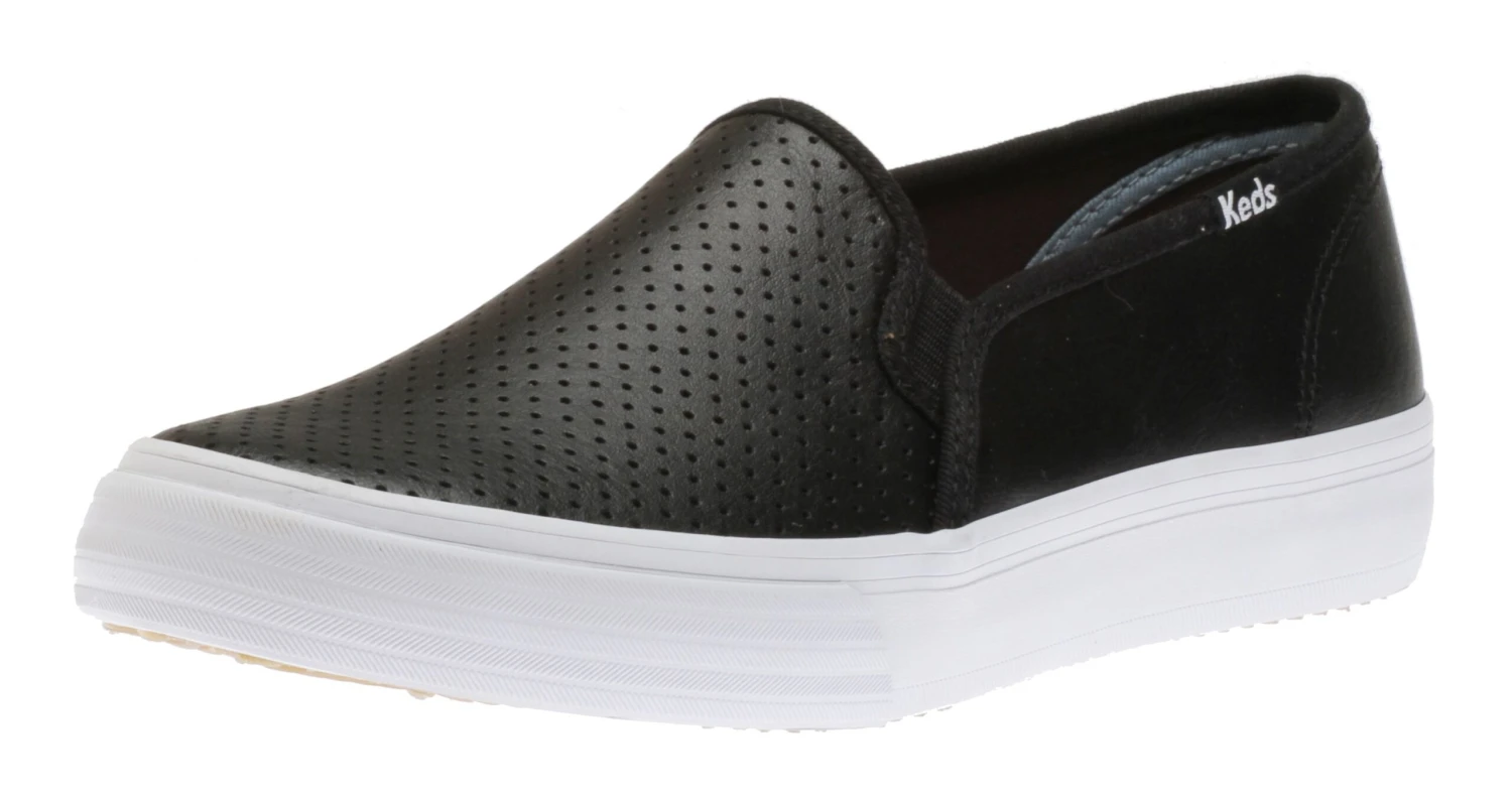 Keds Double Decker Black Perforated Leather Slip-On Sneaker