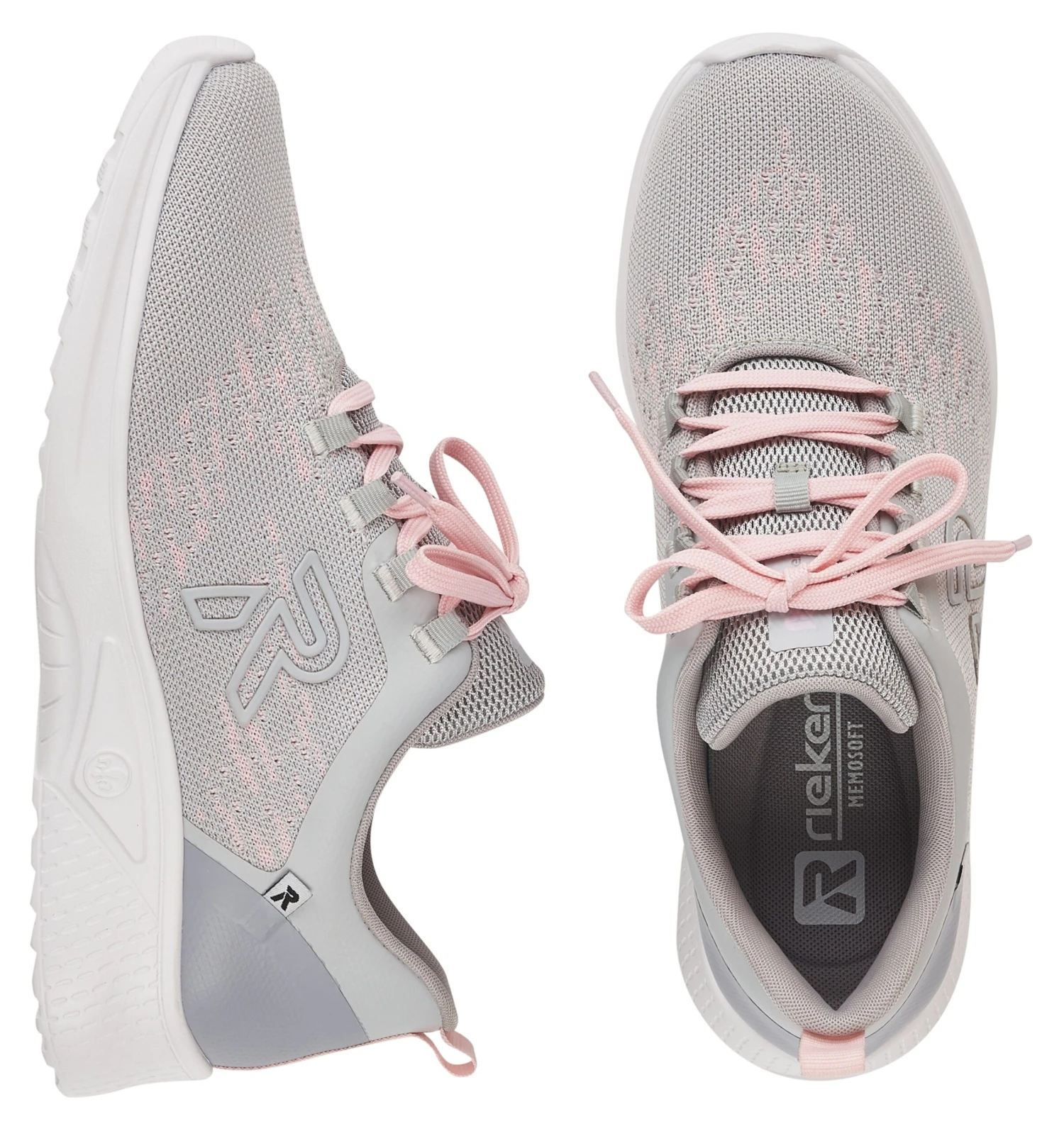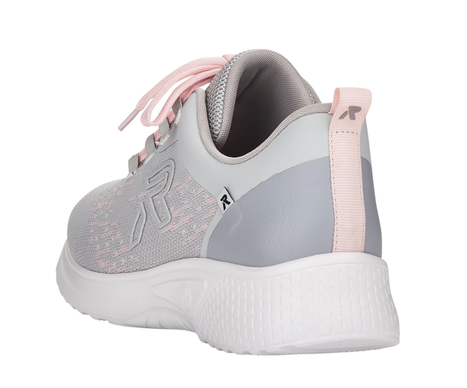 What a fun, feminine and flirty walking shoe! These Knitup169 lace-up shoes by R-Evolution from Rieker will be your go-to sneakers this spring and summer! Stylish without sacrificing comfort, these lace-up shoes feature a breathable and light mesh textile upper in pastel colours with a contrasting white sole and a distinctive logo feature on the side for a chic look. A front lace closure ensure a comfortable and secure fit while a pull tab at the heel enables an easy on and off. A durable, lightweight, flexible rubber outsole provides stable shock-absorbing traction.