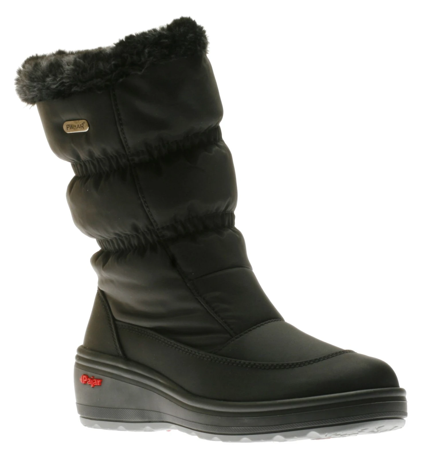 Enjoy this fall and winter season with the luxe 10-inch Snowcap pull-on alpine boot expertly crafted with quilted Italian nylon from Pajar Canada. The boot features an inside zip for easy on and off. Fuzzy fleece lining and a padded cushy insole add to the cold-weather comfort of a chic yet utilitarian boot. The boot features a 2-inch heel and 1-inch platform. The upper is entirely seam-sealed and comfort rated to -30 °C (-22°F) to keep your feet snug all winter long. The signature Pajar Canada ICE-GRIPPER® thermal rubber traction lug sole will get you through icy streets in style keeping you surefooted all the while. Pajar’s premium removable comfort molded insole features a cushy wool blend that is both breathable and anti-microbial. The waterproof leather upper has been pre-treated to repel water and stains.