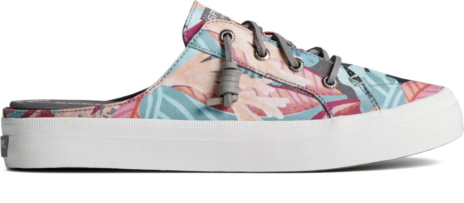 An easy, no-fuss but fashionable slip-on, Sperry’s classic Crest Vibe in a casual mule style is made from lightweight and breathable canvas in a seasonal coral floral print. Its rugged rawhide laces and barrel ties complete its classic Sperry look while allowing for an easy slip-on fit. Fashionable and comfortable, this mule sneaker will be your go-to for everyday wear.